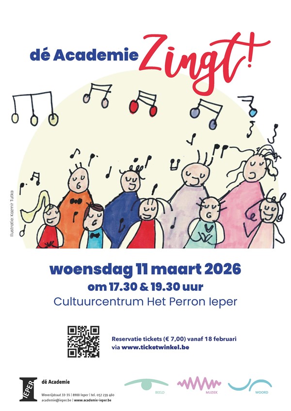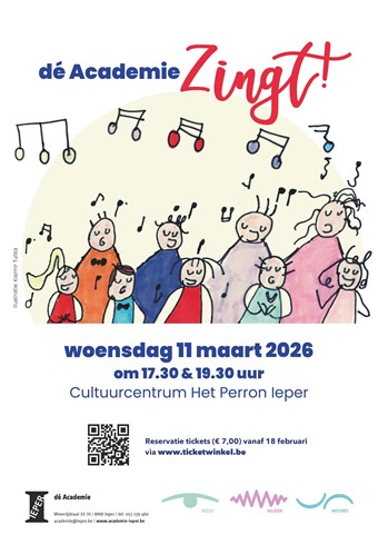 ‘dé Academie zingt!’ is het zangevenement waar je bij moet zijn! Kom en geniet van een gevarieerd programma voor groot en klein. Je hoort kinderen uit het kinderkoor, de klassen podiumkriebels, atelier KLEE, de klassen muziekatelier, folkkoor... en ja, beste publiek, smeer ook maar jullie stembanden. Enkele leerlingen woord verzorgen de intermezzi.
